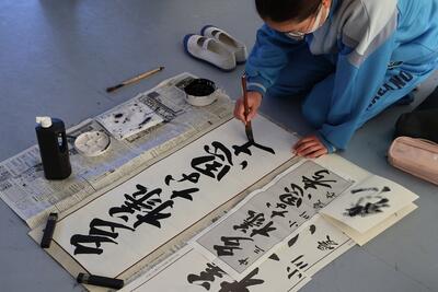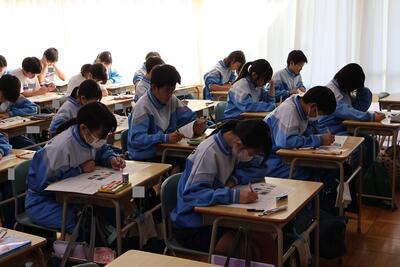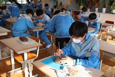 美術室で大勢が作品の完成を目指し頑張っていました。