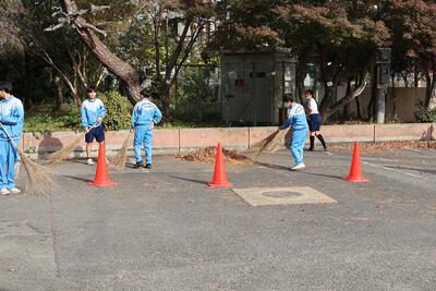 昼休みには生徒会主催の落ち葉掃きボランティア活動が行われました。