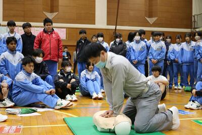 先日12日(金)5,6校時に行われた、中2救命講習の様子を載せます。