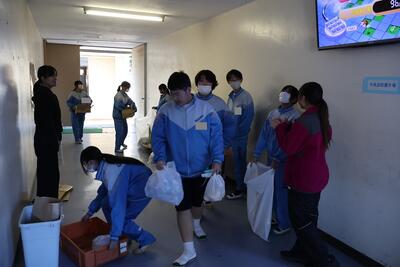 生徒集合前のグリーンアリーナで。