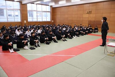 各クラスの保健委員はコンピュータ室で、他の生徒は各教室で、お話をうかがいました。