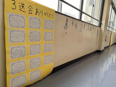 3階と4階の廊下に、3年生から先日の三送会のお礼の手紙が貼られていました。喜んでもらえてよかったですね。