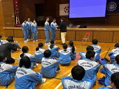 今日で1月が終わり。F先生が出産休暇に入られるので、2年生は集会を行いました。