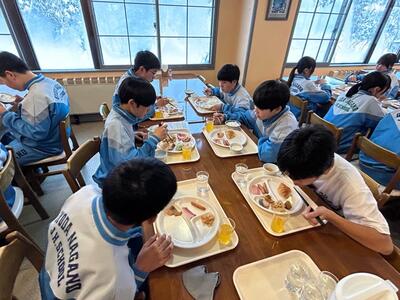この3日間、数名の体調不良者はいましが、大事には至らず無事に過ごすことができました。恐れていたインフルエンザ等の蔓延もなく、ほっとしています。何より昨日は全員がリフトに乗って滑れたこと、本当に素晴らしいです。生徒たちは集団生活のルールを守り、スキーの恐怖心にも打ち克ち、最後まであきらめなければできるようになることなど、スキー学校を通して大きく成長しました。今回の成長を自信に変えてさらなる飛躍を期待しています。