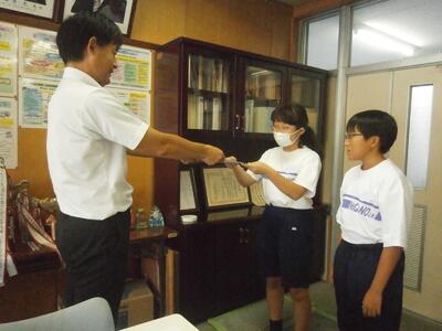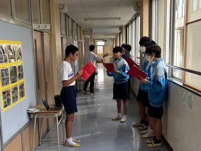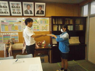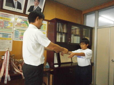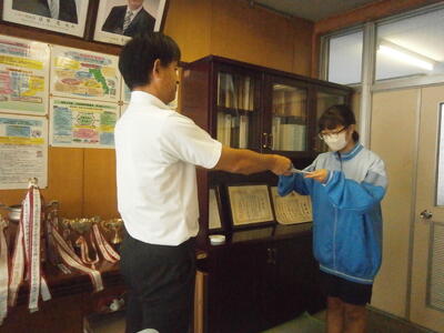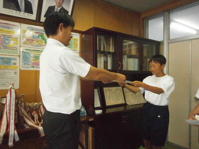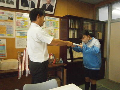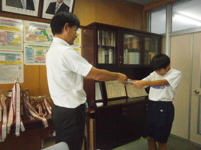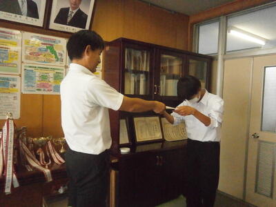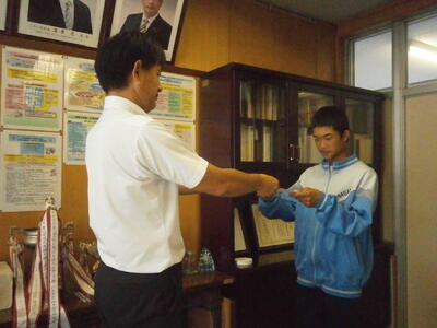 今朝は昨日頑張った野球部が職員室にきて報告してくれました。ごくろうさまでした!!