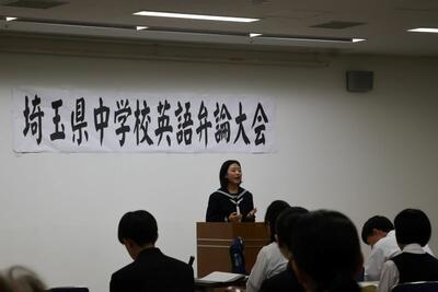 埼玉県中学校英語弁論大会がさいたま市浦和コミュニティセンターで開催され、各地区の予選を突破した精鋭たち46名が熱弁を振るいました。本校からは、北埼玉地区予選を突破した3年生の生徒Sさんが出場しました。