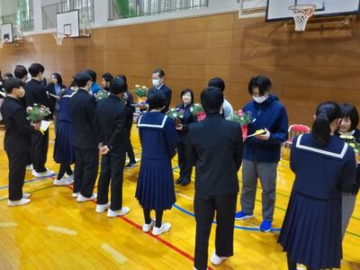 本日1時間目、3年生が先生方に感謝の会を開いてくれました。