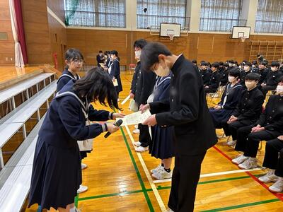 また、生徒会主催による長野鐘賞の表彰も行われました。これは今学期頑張っていた人を生徒同士で推薦して決まる賞です。受賞した皆さんおめでとうございます。