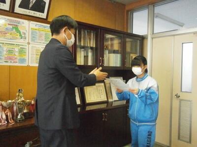 本日、長野スピリット賞の表彰(25回目)を行いました。今年度、最後の表彰となりました。本日は、延べ19名の生徒を表彰し、年間で延べ715名を表彰することができました。当初の目標は400名だったので、大幅に上回ることができました。誰かの役に立とうとする姿や思いやりあふれる行動、頑張りが見られる行動を先生方が見逃さず、認め褒めようということで2年間取り組んできましたが、大きな成果を得ています。生徒たちも表彰されることで自信が付きます。先生と生徒の信頼関係もより深まりました。そして何より、校長として表彰の度に生徒の素晴らしい心に触れられるのが嬉しい限りです。長野中の素晴らしい生徒たちは、私たちの誇りです!