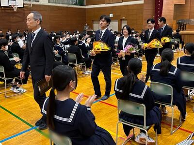 本日5・6校時に、昨年度まで本校でお世話になった先生方の離任式を行いました。