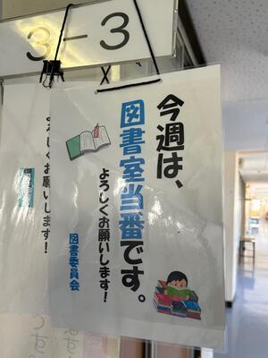 3年3組の教室の札には、図書委員会と環境委員会と…