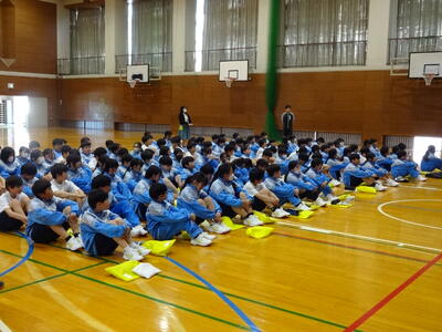 9日の校外学習(千葉県野田市;清水公園)を控えて、1年生の事前指導が行われました。