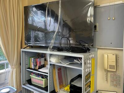 地震対策をしっかりとして、2階のある教室の棚の上に取り付けました。