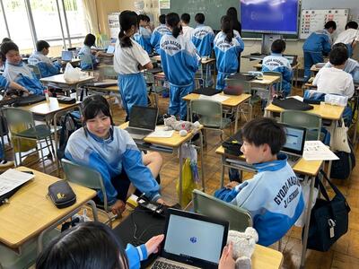 5時間目の学活で、1年生は各自のタブレットの設定を行っていました。