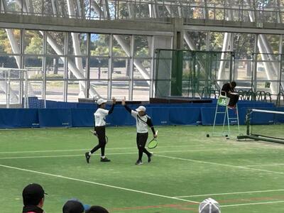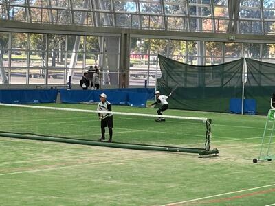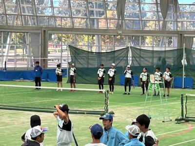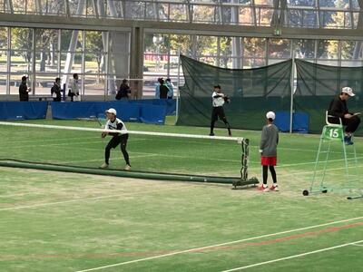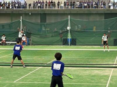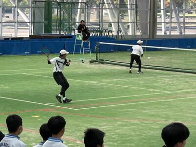 相手は朝霞第一中。本校のペア3組は、地区大会よりもいいショットが見られ、善戦しましたが惜しくも敗れてしまいました。初戦敗退となりましたが、県大会のレベルの高さを肌で感じ、目指すべきところを見つけられたのは収穫だったと思います。今後は、目標を県大会出場よりもレベルを上げて、県大会で何勝する、といった目標を掲げ、さらに精進してください。今後の飛躍を大いに期待しています!