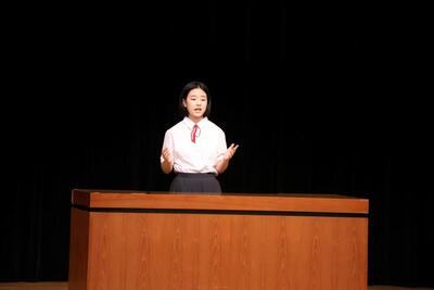 本校からは3年生が出場しました。練習の成果を十分に発揮し、身振り手振りも入れながら流暢な聞きやすい英語を披露してくれました。