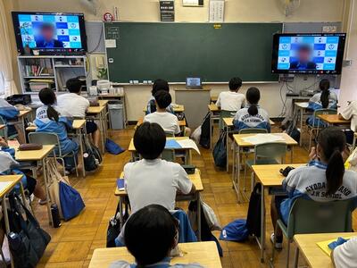 本日6校時に、教室と県警察本部をつないで、SNS講座を行いました。