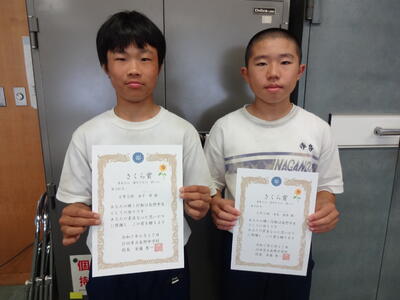 大会のときに、トイレ掃除を手伝ってくれました。また大会終了後は会場のゴミ拾いを率先しておこなってくれました。結果だけが目立ってしまいますが、応援メンバーの取り組みはどこの中学校よりも立派でした。 |
