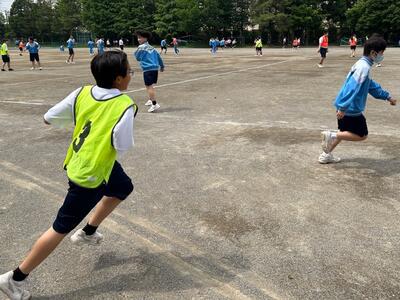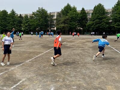 昨日と変わって、今日は校庭で、氷鬼を行いました。
