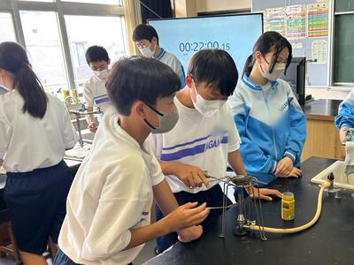 2年生の理科は銅を酸化させ、質量の変化を調べていました。