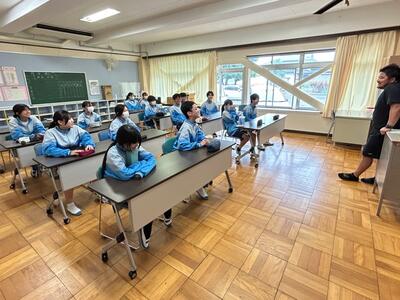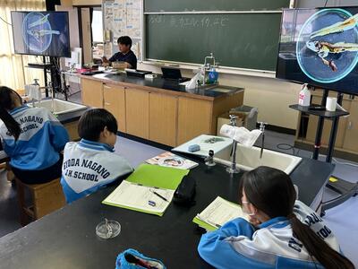 1年生は煮干しの解剖。やり方を先生が説明していました。なかなかの迫力