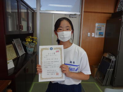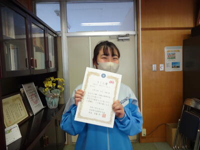 給食の片づけでいつも仲間の運搬を手伝ってくれ ます。(2年男子)英語の学習に意欲的に取り組んで います。(2年男子) |