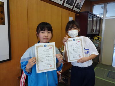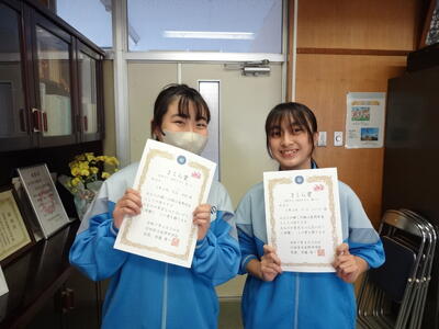 2年生に進級して前向きな心で頑張っています。 (2年女子)昨年同様に給食の片づけをいつも手伝って くれます。(2年男子)けがをした仲間の荷物を快く 運んでくれました。(2年男子) |