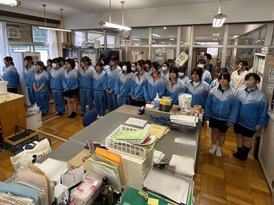 理科室担当として、いつも黙々と丁寧に清掃に取り組んでいます。(3年女子) |