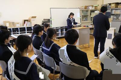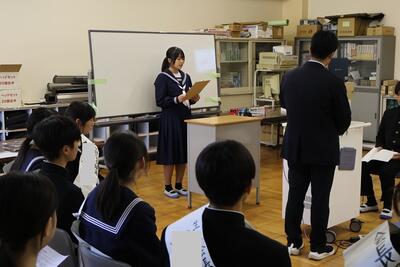インフルエンザの感染拡大防止のため、今年はコンピュータ室からのリモートで、立会演説会が行われました。