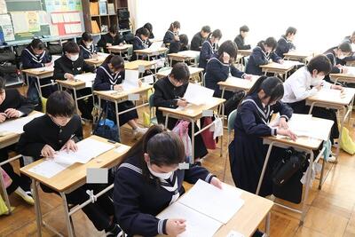 この日、3学年一斉に実力テストを行いました。