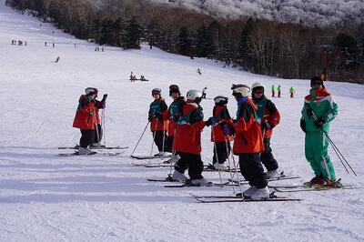 早朝に行田市を出発して、1学年が長野県下高井郡山ノ内町にある志賀高原 一の瀬ファミリースキー場でスキー学校を行っています。