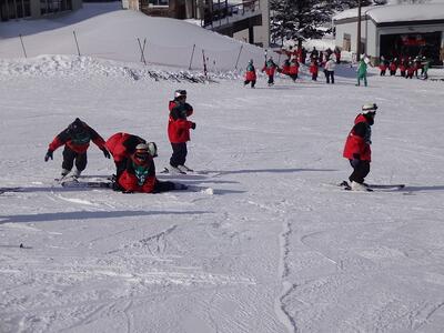 昨日は、なかなかうまく滑れずにぐずっていた生徒も、自分の力で滑れるようになると笑顔でゲレンデを滑って行きました。