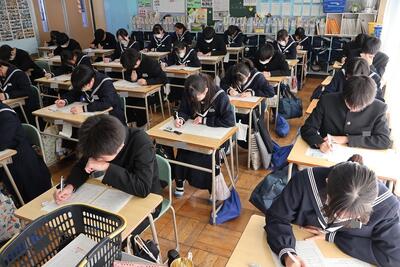 3年期末テスト 投稿: HP担当 (16:51) カテゴリー: 今日のようす 3年生が一足早く期末テストとなりました。 受験勉強の最中ですが、こちらにも一生懸命取り組んでいます。 頑張れ、みんなー! 2年生のクラスが、インフルエンザのために本日学級閉鎖となりました。 お大事に&気をつけて。 0 - -