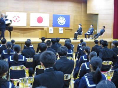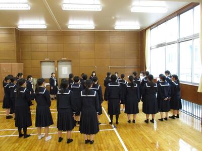 卒業式練習が始まる 投稿: HP担当 (18:29) カテゴリー: 今日のようす 早いものでもう3月。5時間目には第1回の卒業式練習を行いました。 写真のように先生方が、良い例、普通の例、悪い例を示してくれました。 でも、「良い子悪い子普通の子」と言われても、生徒全員と先生方の大半はわからないようでした。 昭和は遠くなりにけり。 3年生も卒業式練習を始めました。 先週まで入試だったのに、ここから卒業式までは急展開となります。 0 - -