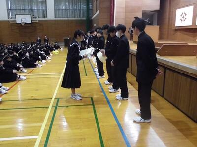 2年生と1年生の代表に修了証書が授与され、