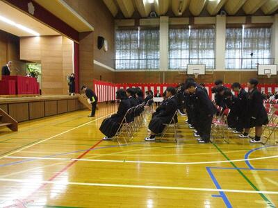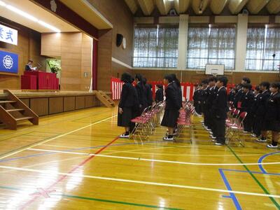 入学式・始業式 投稿: HP担当 (04/08) カテゴリー: 今日のようす 本日、155名の新入生を迎え、令和8年度の入学式・始業式を行いました。 きのう2・3年生が準備してくれた会場で、式が始まりました。 新入生一人一人の名前が呼ばれ、しっかりとした返事をしていました。 在校生代表のことば 新入生代表のことば 大変立派な式になりました。 2・3年生もとてもしっかりしていました。 今年度もよい1年になりそうです。張り切っていきましょう。 0 - -