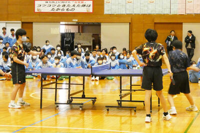 先日4月10日(木)に行われた新入生歓迎会の中から、部活動紹介のようすを紹介します。